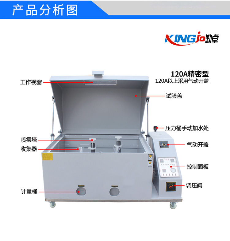 盐雾试验机通过考核对材料及其防护层的盐雾腐蚀的能力,以及相似防护层的工艺质量比较,同时可考核某些产品抗盐雾腐蚀的能力,适用于零部件、电子元件、金属材料的防护层以及工业产品的盐雾腐蚀试验。盐雾试验机型号HK-60W内尺寸 (宽深*高)外尺寸 (宽*深*高)设备电压40型450*350*300mm900*450*600mm220V60型600*450*400mm1100*550*900mm220V90
