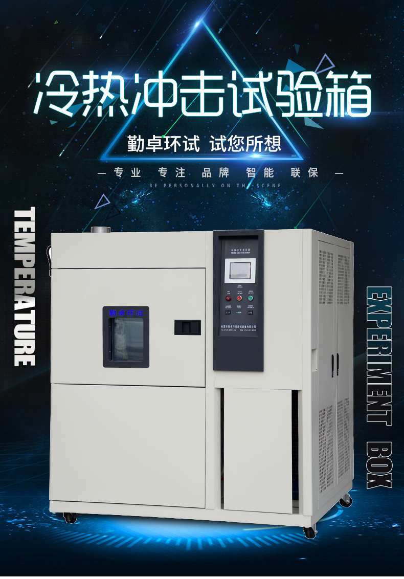 吊篮式冷热冲击试验机用于光伏组件、LED灯管、LED灯具、电子电器零组件、自动化零部件、通讯组件、汽车配件、金属、化学材料、塑胶等行业,测试其材料对高、低温的反复抵拉力及产品于热胀冷缩产出的化学变化或物理伤害,可确认产品的品质,从精密的IC到重机械的组件,无一不需要冷热冲击试验箱的鉴定。